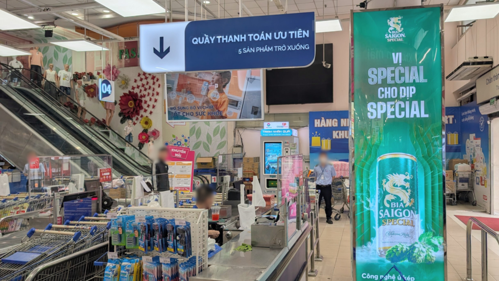ベトナムのどこのスーパーでもある事ですが、ベトナムは皆レジ係の方もお客さん側も焦らずゆっくりの支払いが多い印象です。