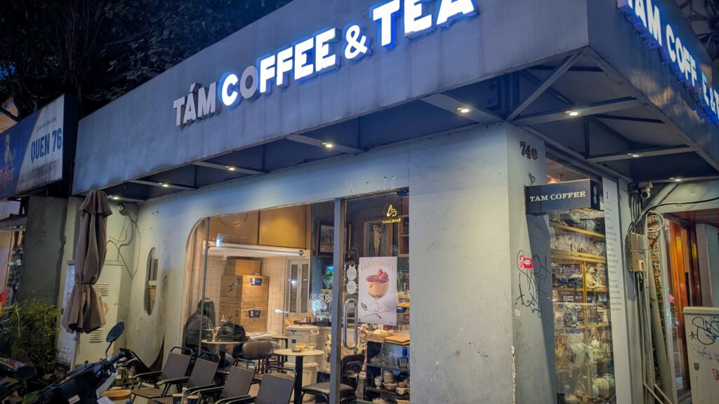 また、TAM COFFEEのエッグコーヒーは、下の写真の店舗でも飲むことができます。ビンコムセンターショッピングモールから近く、レタントン通り沿いにありわかりやすいですが、雰囲気は普通のカフェです。