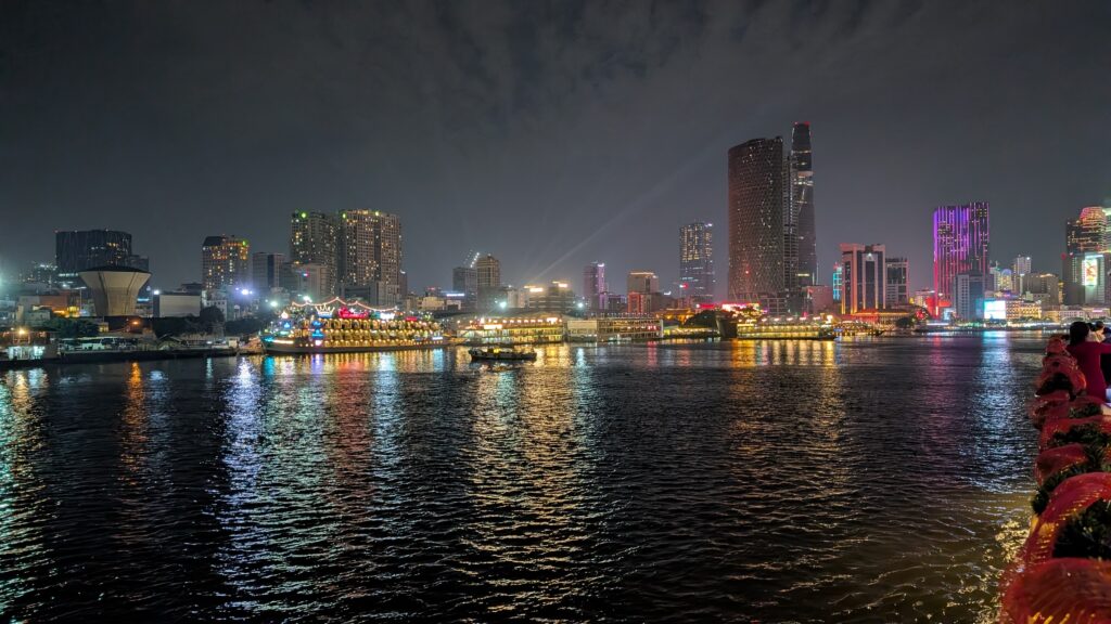 ホーチミン観光の締めくくりに欠かせないのが、サイゴン川ディナークルーズです。喧騒に包まれた街から一歩離れ、心地よい夜風に吹かれながら眺める景色は、まさに格別な美しさです。
