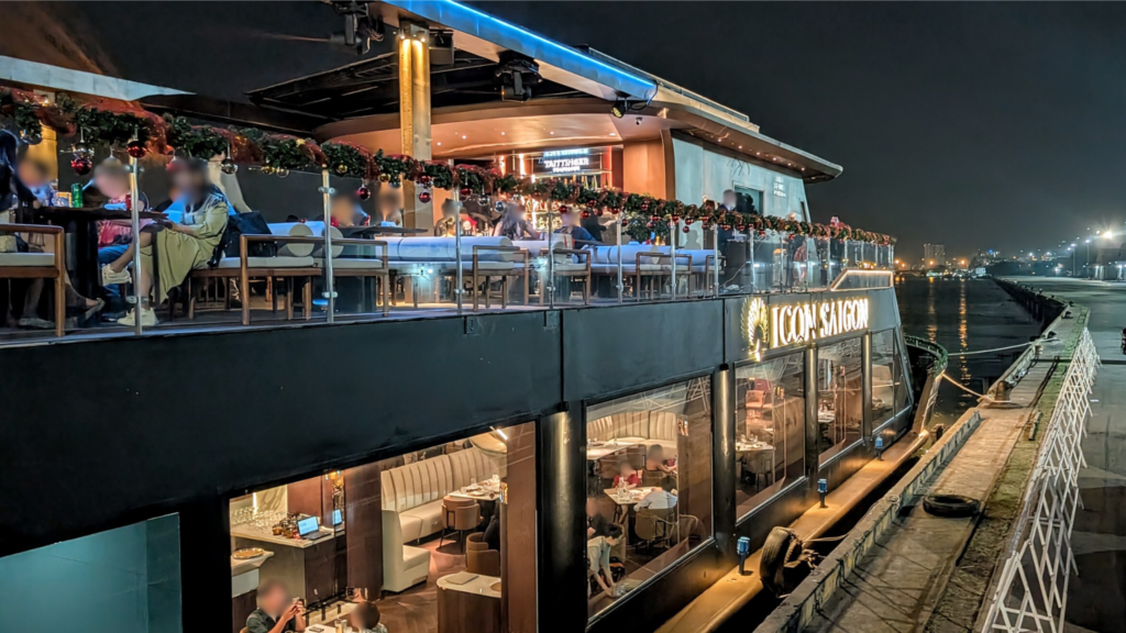 そのほか「ICON SAIGON(アイコンサイゴン)」は、ホーチミンで最も豪華なクルーズ船で、高級感と優雅さを兼ね備えた特別な体験が楽しめます。空調の効いた室内もありますが、最上階の開放的なオープンテラス席が人気です。
