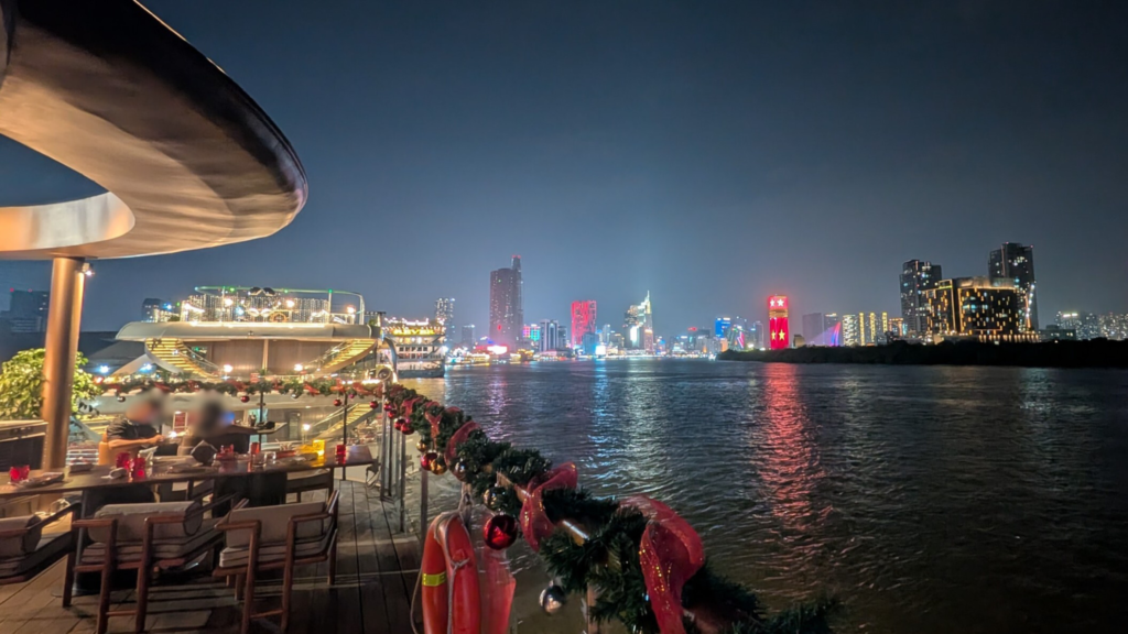 ホーチミンの夜景を贅沢に楽しむなら、新時代のラグジュアリー・クルーズ船「ICON SAIGON(アイコンサイゴン)」をおすすめします。今回は、私がこの船の最上階のオープンテラスで味わうコース料理を体験してきた内容をご紹介します。