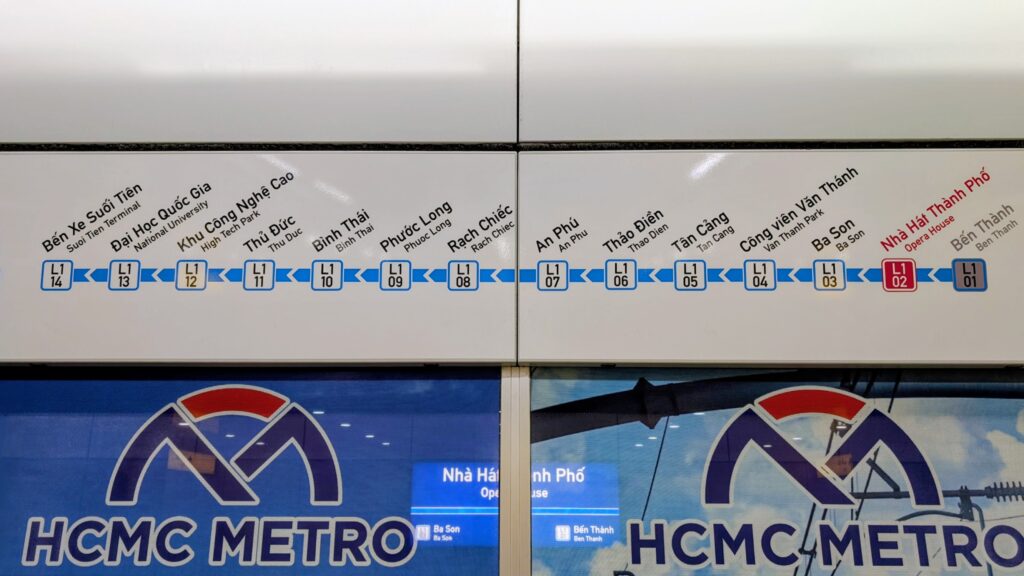 2024年12月に開業したメトロ1号線は、ホーチミン1区中心部のベンタイン市場のあたりを起点に、ドンコイ通り沿いのオペラハウスの地下を通り、ビンタン区やタオディエン地区を通り抜けていきます。約20キロ離れた北東部の郊外と結ぶ、都市鉄道です。