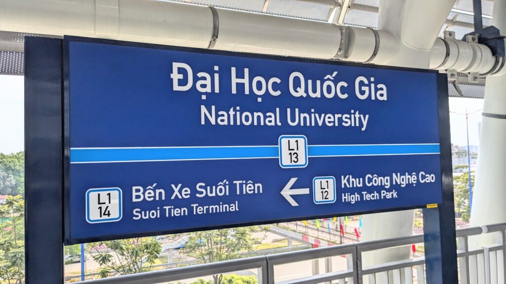 駅構内や車内は、ベトナム語と英語で案内されています。