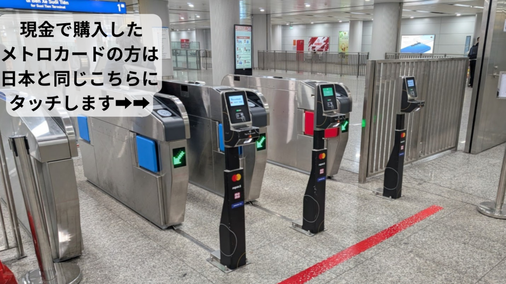 ですがホーチミンのメトロでは、クレジットカードのタッチ決済のため瞬間的に決済されず、多少時間がかかります。日本の交通系ICカードとはシステムが違い、反応速度はかなり遅いです。ゆっくり確実にタッチしましょう。