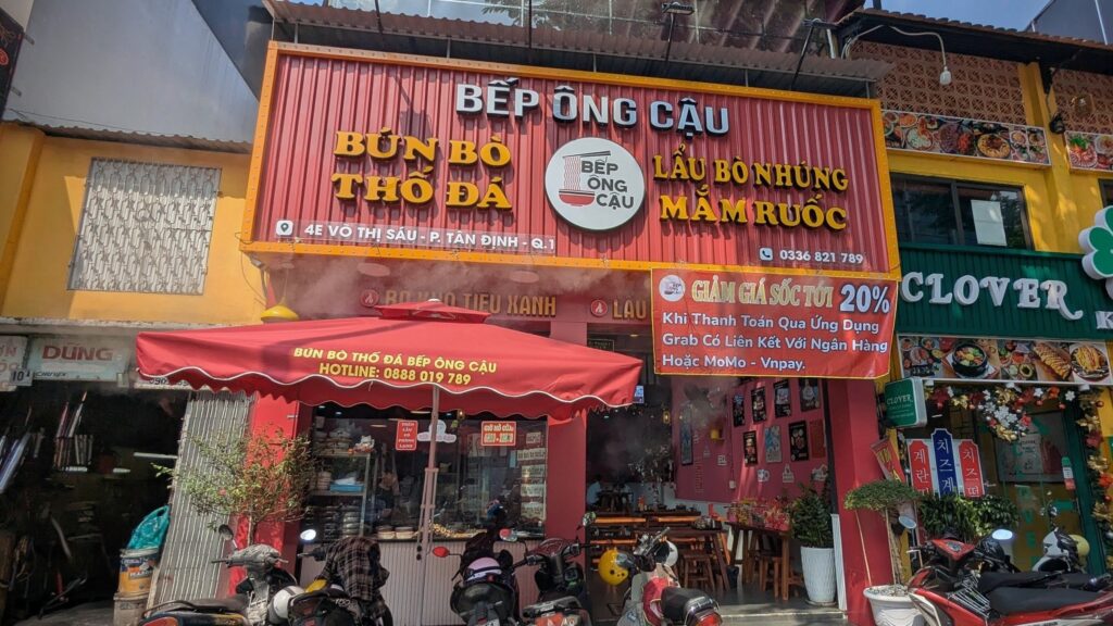 ホーチミンには数多くのブンボー専門店がありますが、その中でもユニークなスタイルで知られるのが「BEP ONG CAU」です。