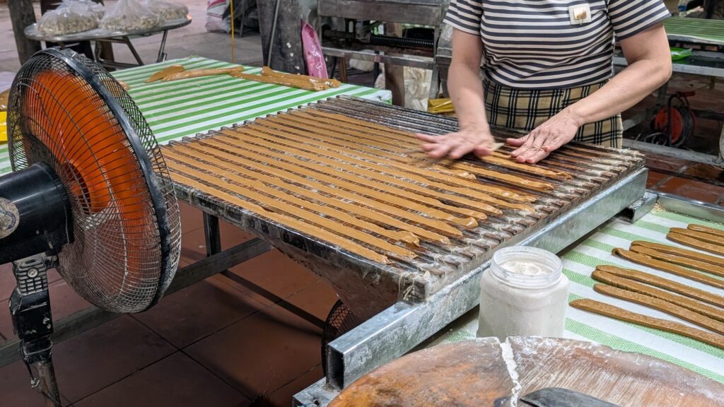 トイソン島に到着後、徒歩で昔ながらの手法でココナッツキャンディーを製造している工房を訪れます。