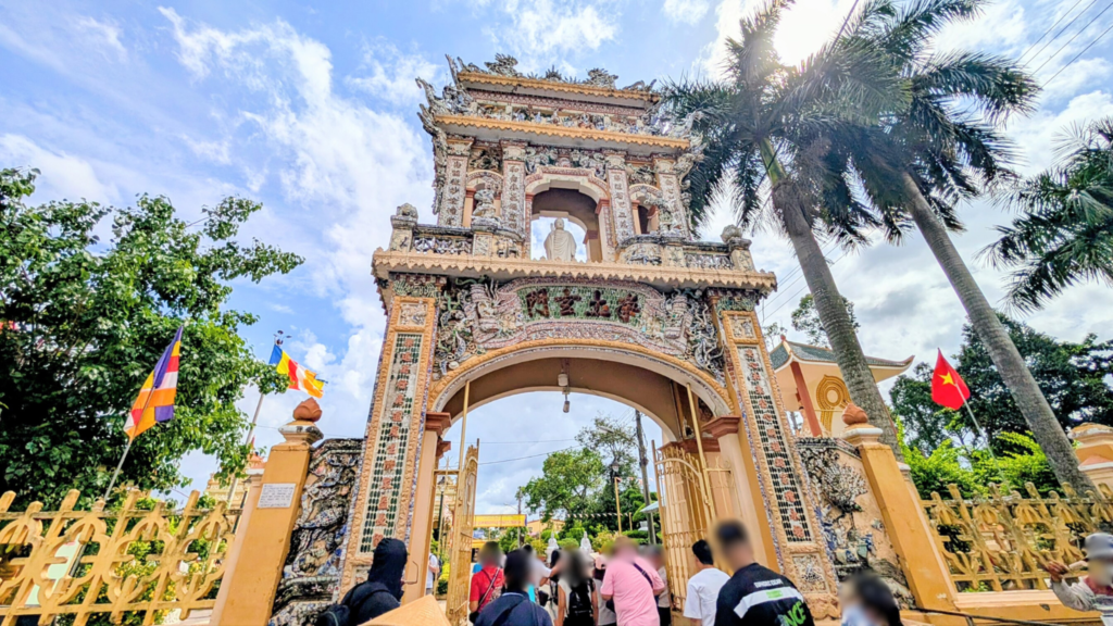 この寺院は、19世紀初頭に建てられた歴史あるお寺で、ベトナムの仏教建築にフランス、カンボジア、中国の建築様式が融合した非常にユニークなデザインが特徴です。
