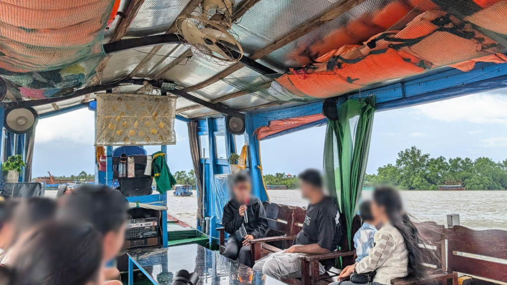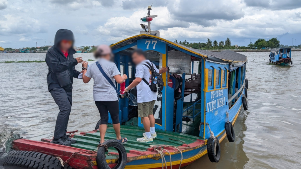 まずは、メコン川を渡る少し大きめの船に全員乗って、ツアーの中心地となるトイソン島へと向かいます。