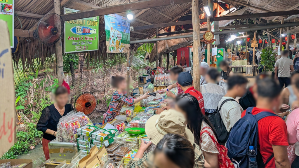 ここでは、メコンデルタの自然で育ったミツバチが作るはちみつを試飲することができます。ライムを絞ったはちみつティーは、さっぱりとした甘さで暑い日には最高のリフレッシュになります。