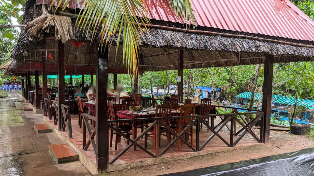 ほとんどのツアーのメインの行程は、メコン川の中洲トイソン島へ渡り、ボートクルーズと食事になります。