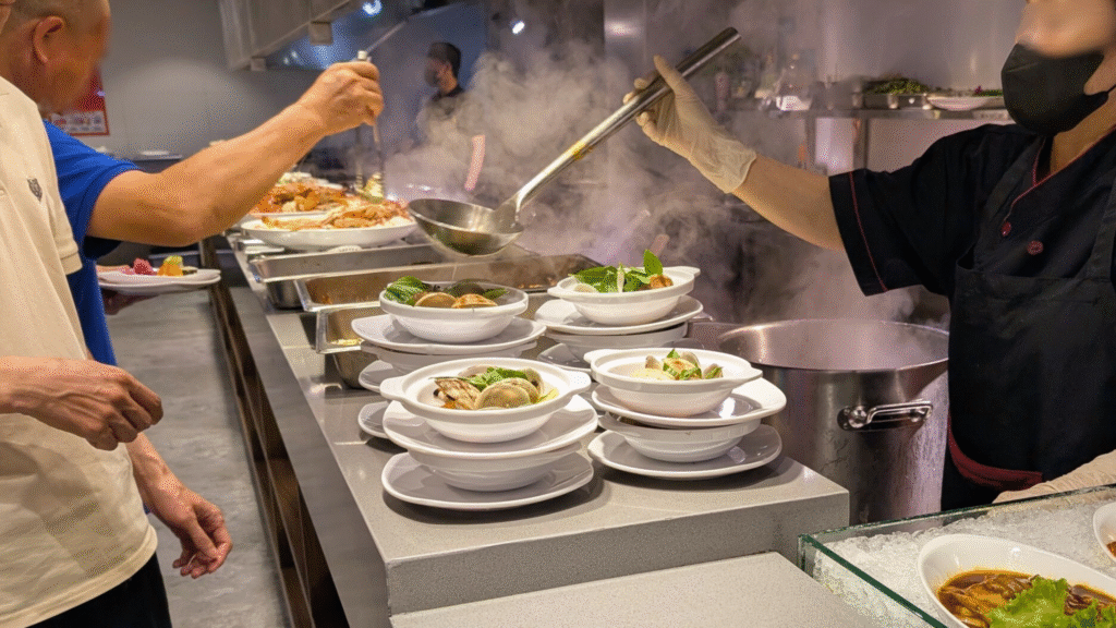 清潔で広々とした美しい店内、圧倒的な種類の料理、そして活気あふれる雰囲気は、忘れられない食事体験になるでしょう。